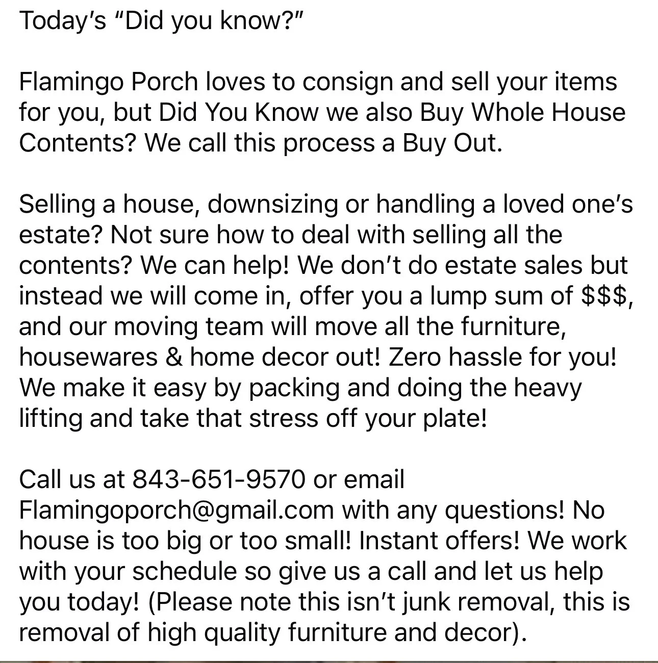 Flamingo Porch is happy to announce it’s under new ownership! We are offering many of the same features as always but hoping to shake things up a bit!